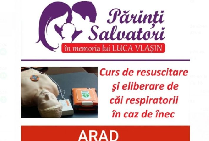 Cursul „Părinți Salvatori”, de resuscitare în caz de stop cardio-respirator și salvare în caz de înec se va organiza la Arad în zilele vineri, sâmbătă și duminică, 16-18 aprilie, pentru câte 2 grupe de curs: de la ora 10:00 și de la ora 17:00, cursul este destinat tuturor persoanelor adulte, nu doar părinților.
